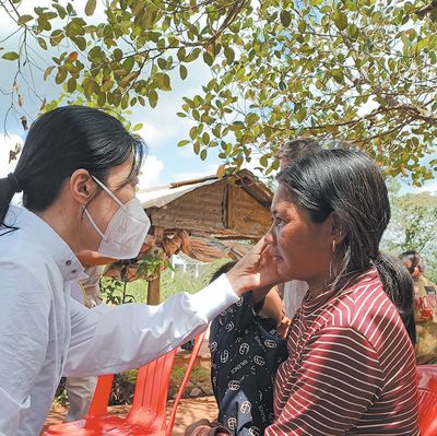 2022年3月,由中國中醫(yī)科學(xué)院西苑醫(yī)院醫(yī)生為主體的中國援柬中醫(yī)醫(yī)療隊(duì)抵達(dá)柬首都金邊,開始為期1年的醫(yī)療服務(wù)工作。今年1月,醫(yī)療隊(duì)來到桔井省,為當(dāng)?shù)孛癖娺M(jìn)行義診,許多人慕名前來檢查身體?!奥牬謇锶苏f,中國醫(yī)療隊(duì)的口碑非常好,治好了很多患者,我就想帶女兒去試試。”廷禪達(dá)的母親孔吉棉告訴記者。