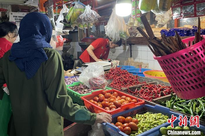 11月18日,雅加達南部一處生鮮市場,民眾正在購買辣椒。中新社記者 李志全 攝
