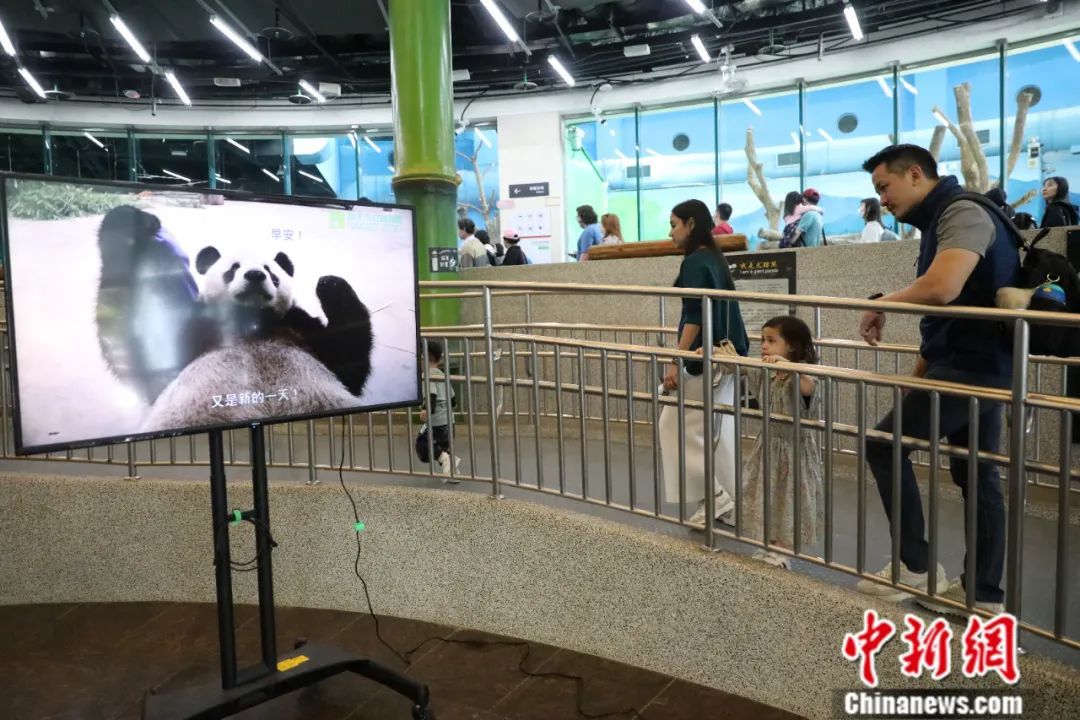 11月19日,民眾來到臺(tái)北動(dòng)物園緬懷“團(tuán)團(tuán)”。圖為現(xiàn)場(chǎng)播放“團(tuán)團(tuán)”一家回顧影片。中新社記者 陳小愿 攝