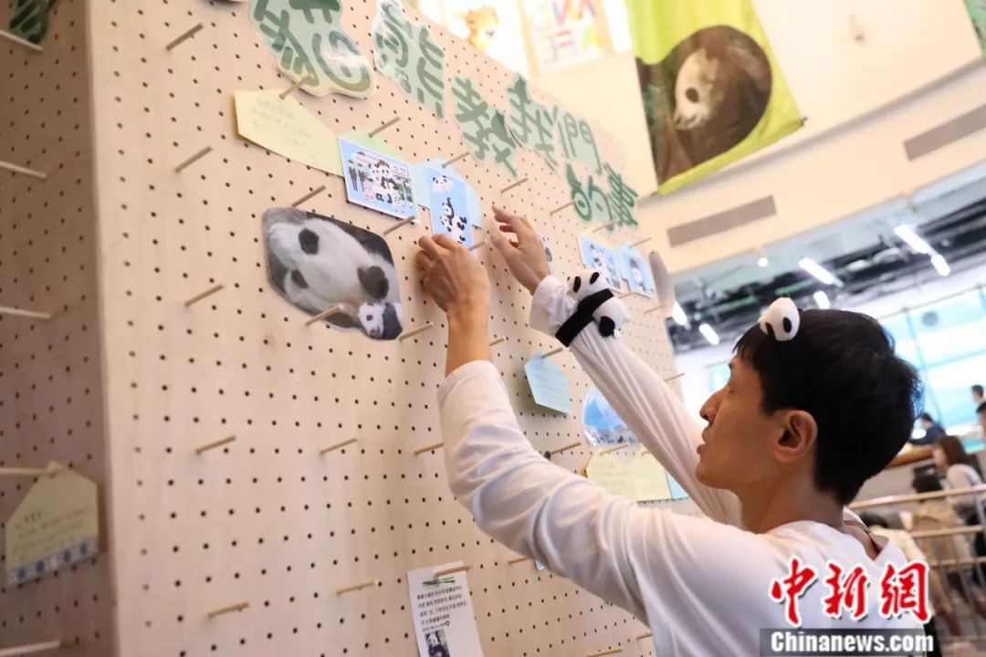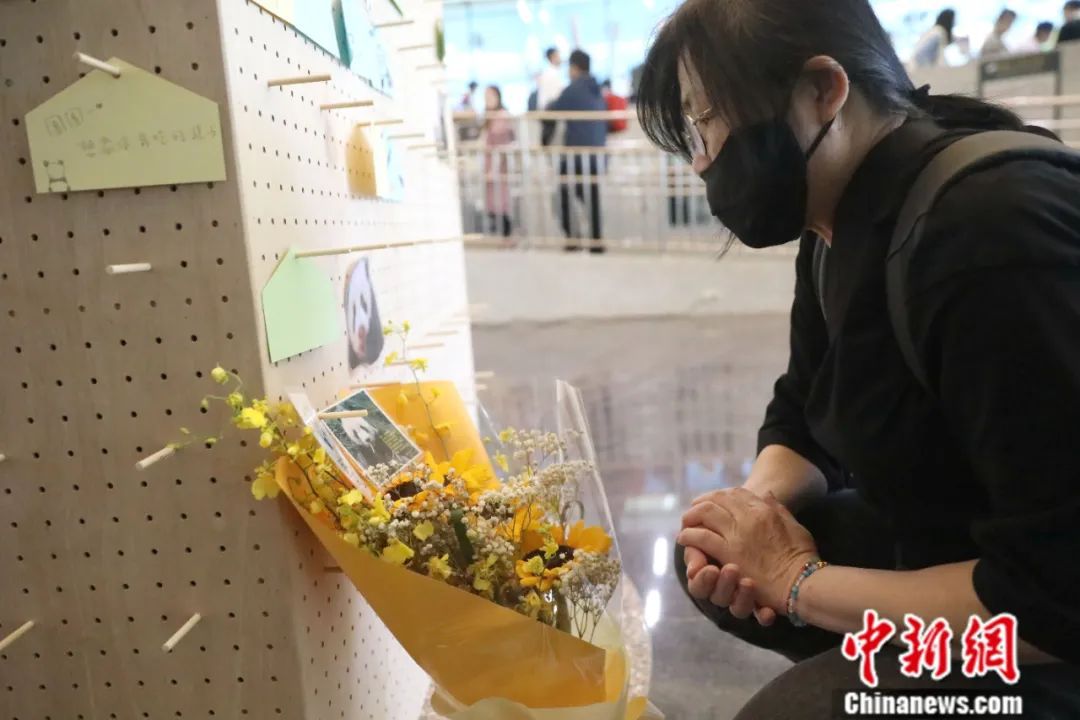 不少家長(zhǎng)帶著小朋友來到現(xiàn)場(chǎng)參加活動(dòng),小朋友在卡片上慢慢畫出心中熊貓的模樣,并寫下想對(duì)“團(tuán)團(tuán)”說的話。有的民眾還送來鮮花,表達(dá)對(duì)“團(tuán)團(tuán)”的喜愛和懷念之情。