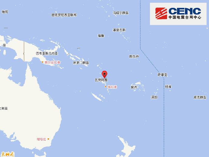 中新網(wǎng)11月22日電 中國地震臺網(wǎng)正式測定:11月22日12時47分在瓦努阿圖群島(南緯15.05度,東經(jīng)168.15度)發(fā)生6.9級地震,震源深度10千米。