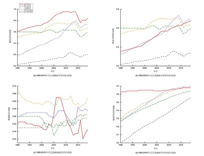 1990年-2019年中亞五國(guó)糧食安全二級(jí)指標(biāo)變化趨勢(shì)。譚亮成 供圖
