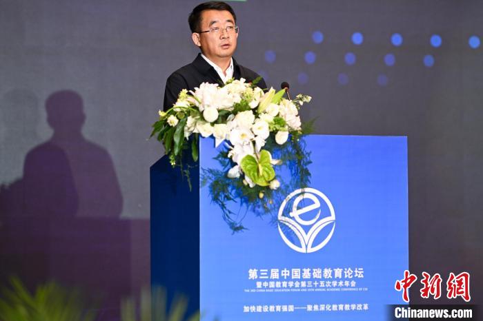 圖為中國教育學(xué)會副秘書長趙應(yīng)生在論壇上交流發(fā)言。中新網(wǎng)記者何蓬磊攝