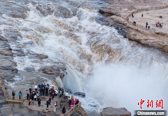 “壺口瀑布不同季節(jié)有不同的景色。春季,周?chē)焦饶劬G裝點(diǎn),花草盛開(kāi);夏季,水流洶涌,瀑布上空水霧彌漫;秋季,金黃和紅色的樹(shù)木,與飛瀑白色水簾相映成趣;冬季,冰峰倒掛景象更加壯觀,如夢(mèng)似幻?!鄙轿鼽S河文化旅游發(fā)展有限公司票務(wù)科科長(zhǎng)陳少卿介紹。