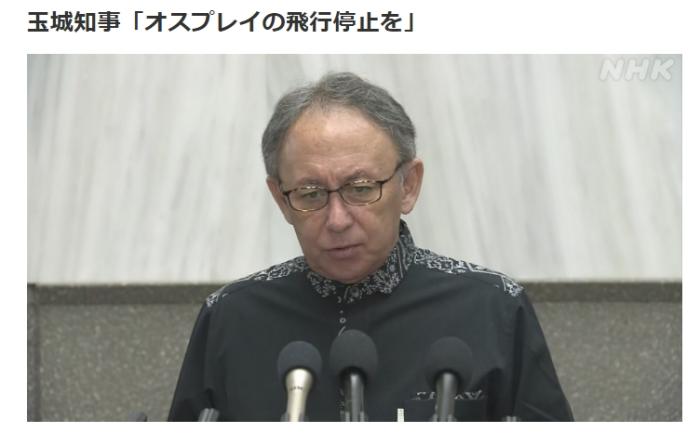 玉城表示,“正因沒有正視‘魚鷹’的危險性,才釀成了如此嚴重的事故,實在令人遺憾”,他強調目前非常擔心“魚鷹”在民用區(qū)域和民用機場起降成為常態(tài),呼吁駐日美軍立即停飛“魚鷹”,直至安全問題徹底解決。