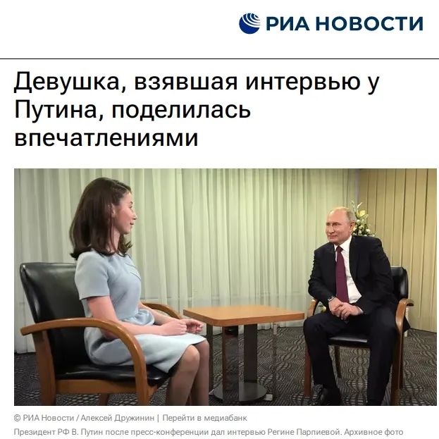 普京接受失明女孩采訪。圖片來源:俄新社報(bào)道截圖