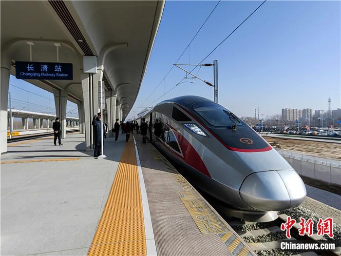 12月8日,濟鄭高鐵全線通車。圖為在濟南長清站始發(fā)前往鄭州的復(fù)興號列車。沙見龍 攝