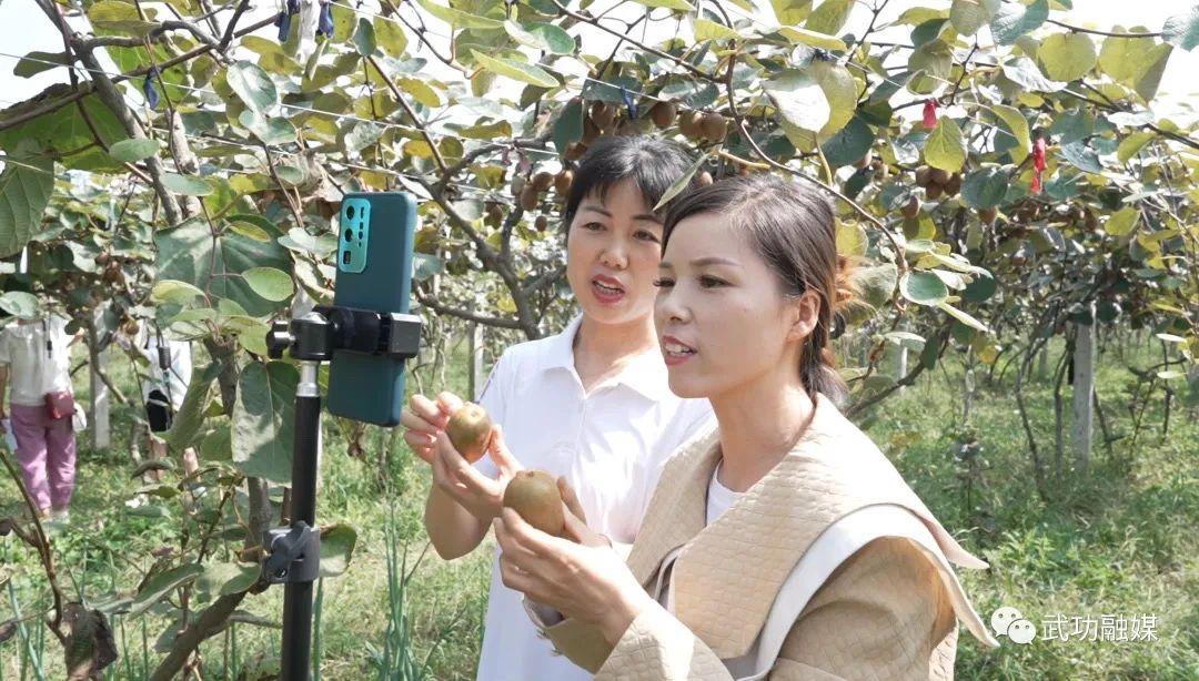 圖為主播在獼猴桃園內(nèi)直播。武功縣融媒體中心 供圖