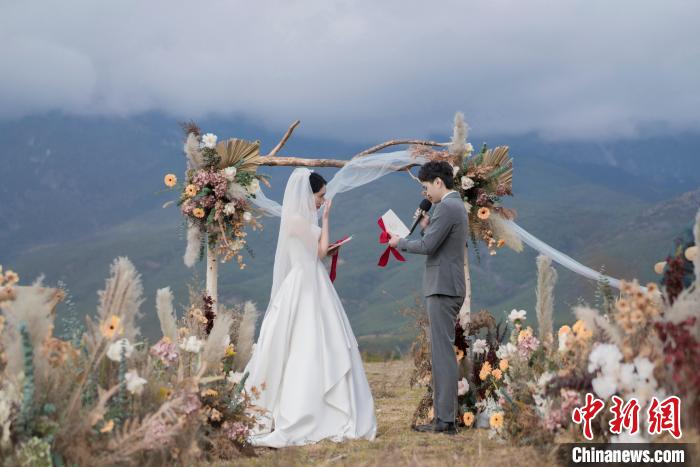 如今,旅行結(jié)婚受到越來越多年輕人的熱捧。資料圖為一對(duì)新人在2021年11月旅行結(jié)婚?!?受訪者張瑋祎 供圖)