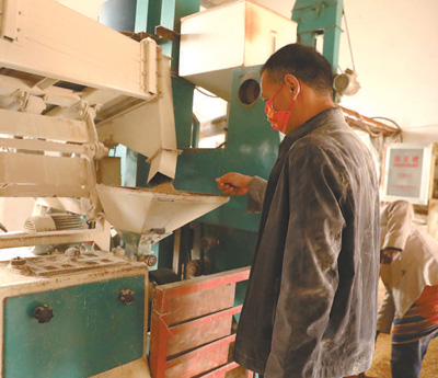 7月25日,在莫桑比克馬普托省博阿內(nèi)地區(qū),技術(shù)員在中莫農(nóng)業(yè)技術(shù)示范中心加工農(nóng)作物。