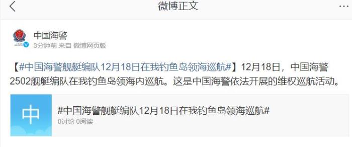 - 中國(guó)海警艦艇編隊(duì)12月18日在我釣魚(yú)島領(lǐng)海巡航