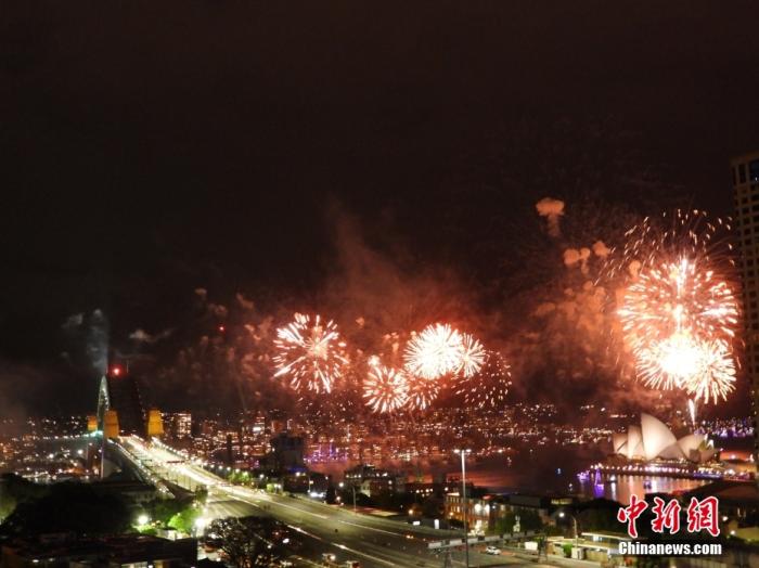資料圖:當(dāng)?shù)貢r間2023年12月31日晚上9點和午夜時分,澳大利亞悉尼海港大橋和歌劇院燈火通明,音樂響起,迎來了2024年的到來。