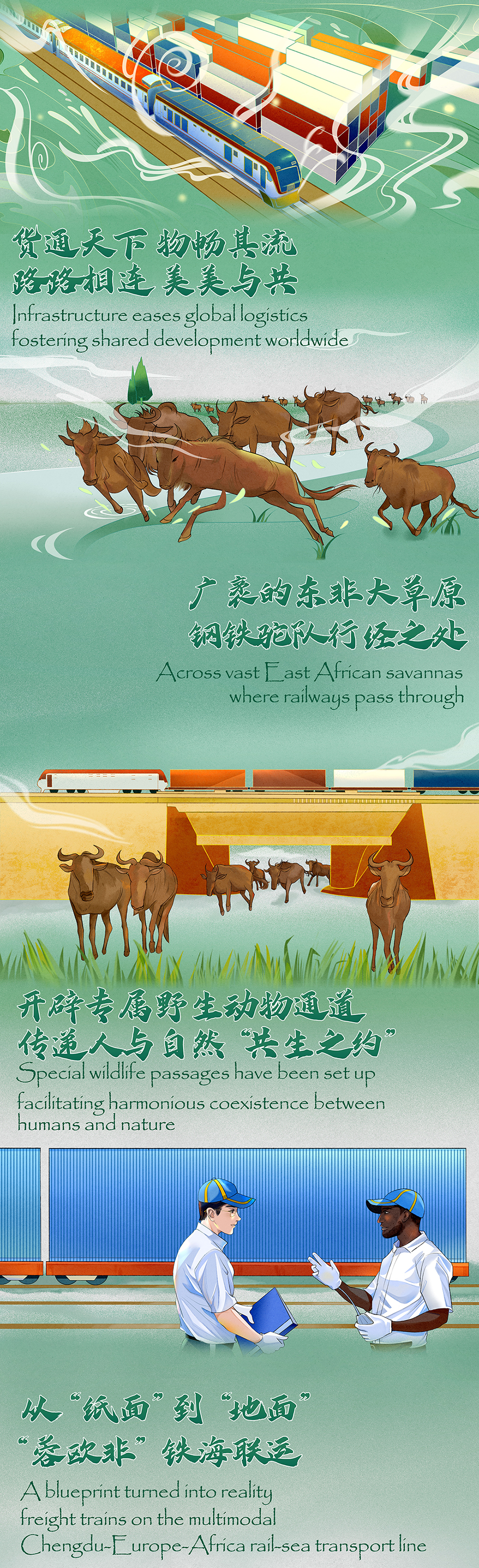 中新網(wǎng)12月29日電 從蒙內(nèi)鐵路到中歐班列:“一帶一路”倡議跨山越海,物暢其流,共建國家共襄盛舉,共享繁榮,奏響跨大陸的動(dòng)人交響樂。