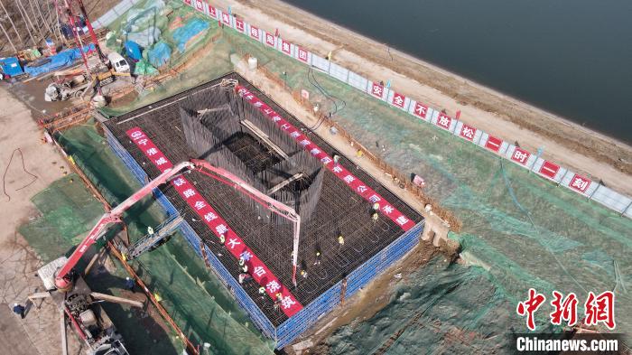 中新網(wǎng)南京1月7日電(黃俊峰 楊道賢)7日,寧淮城際鐵路全線最大承臺——寧淮城際鐵路六合特大橋跨滁河矮塔斜拉橋澆筑。標(biāo)志著大橋進(jìn)入主墩墩身結(jié)構(gòu)施工階段,項目建設(shè)進(jìn)度穩(wěn)步推進(jìn)。