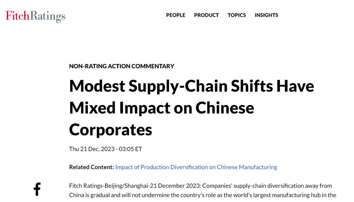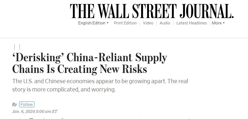 中國日報網(wǎng)1月8日電 美國《華爾街日報》網(wǎng)站報道稱,最新研究揭示了美西方針對中國供應鏈實施“去風險化”政策的實際效果。初步結(jié)論令人擔憂:旨在打造彈性供應鏈的相關措施,可能是虛幻的。結(jié)果將導致全球供應鏈變得更為復雜,反而會產(chǎn)生新的風險。