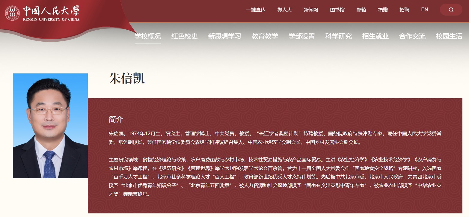 中新教育丨朱信凱已任中國(guó)人民大學(xué)黨委常委、常務(wù)副校長(zhǎng)