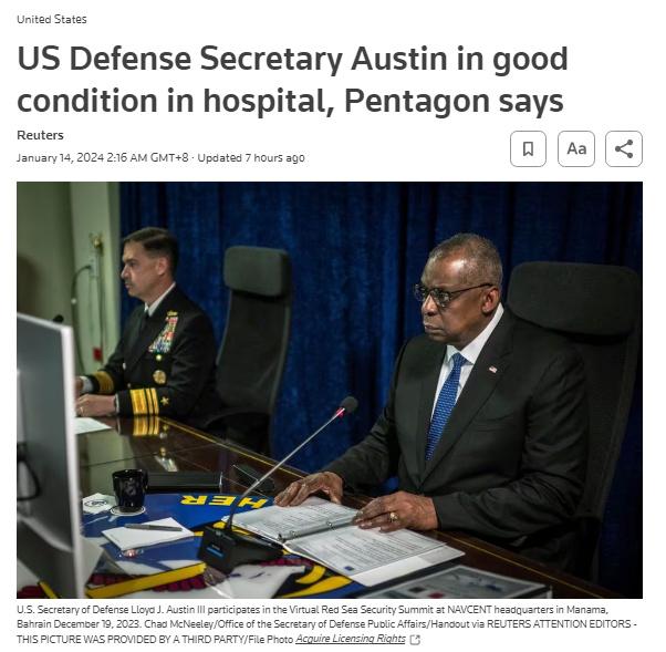 此前報(bào)道,在美國防長奧斯汀隱瞞住院并無法履職事件曝光5天后,五角大樓1月9日對(duì)外披露,奧斯汀2023年12月被診斷出患有前列腺癌,在接受手術(shù)后出現(xiàn)并發(fā)癥,導(dǎo)致住院治療。