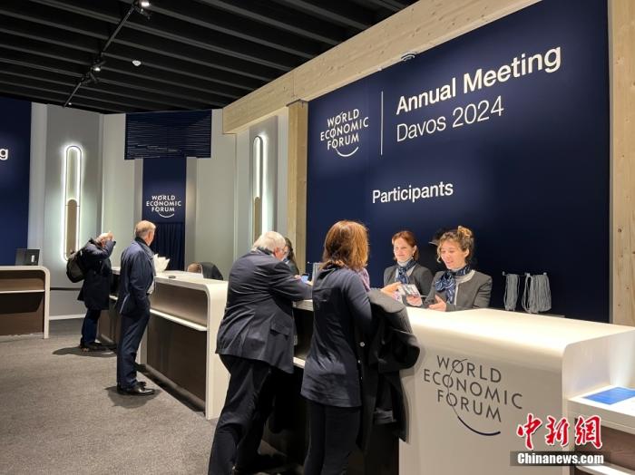 資料圖:當?shù)貢r間1月15日,與會人員進行參會注冊領取證件。當日,世界經(jīng)濟論壇2024年年會在瑞士東部小鎮(zhèn)達沃斯拉開帷幕。