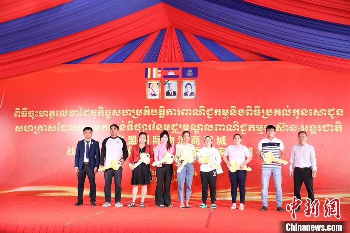 當(dāng)天,東盟國際物流商貿(mào)城舉行戰(zhàn)略合作伙伴簽約儀式,并向首批入駐商家交付店鋪鑰匙。柬埔寨商業(yè)部、金邊市政府、中國駐柬埔寨大使館等相關(guān)官員,柬埔寨僑社代表、商界領(lǐng)袖以及來自各國的商業(yè)合作伙伴共同出席前述活動。
