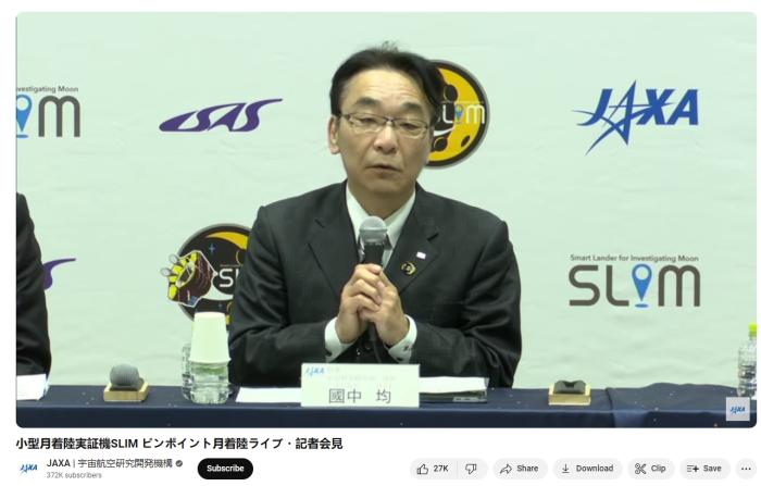 JAXA宇宙科學(xué)研究所所長(zhǎng)國(guó)中均在新聞發(fā)布會(huì)上講話。圖片來源:日本宇宙航空研究開發(fā)機(jī)構(gòu)(JAXA)直播截圖