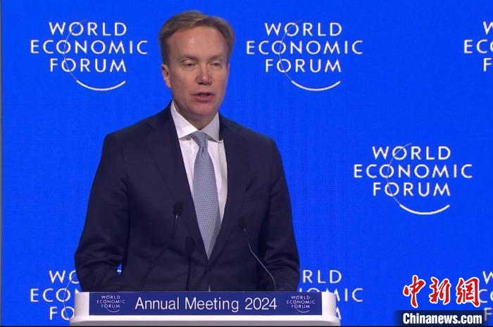 當(dāng)?shù)貢r(shí)間1月19日,世界經(jīng)濟(jì)論壇2024年年會在瑞士達(dá)沃斯閉幕。圖為世界經(jīng)濟(jì)論壇總裁博爾格·布倫德發(fā)表閉幕致辭。中新社記者 馬秀秀 攝