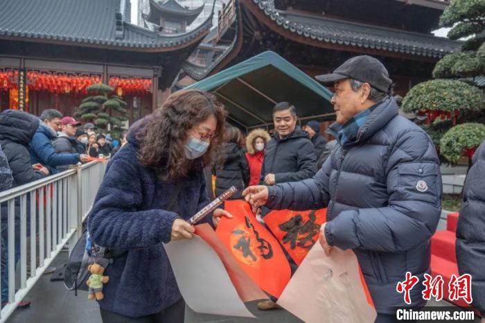 上海覺群書畫院院長樂震文表示,上海覺群書畫院連續(xù)多年共同參與玉佛禪寺發(fā)起的新春送?;顒?,用書法作為媒介回饋社會,在農(nóng)歷新春到來前為大眾現(xiàn)場題寫飽含祝福的“福”字,奉上書畫家們衷心的祝福。