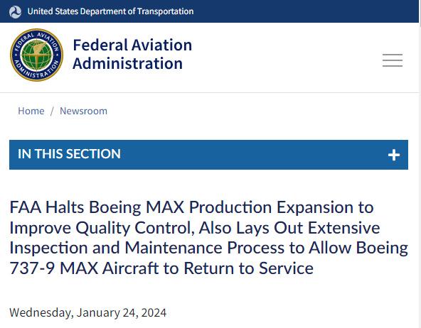 美國聯(lián)邦航空管理局局長邁克·惠特克表示,在檢查和維護過程中發(fā)現(xiàn)的飛機質(zhì)量控制問題得到解決之前,該機構(gòu)不會同意波音公司提出的任何擴大生產(chǎn)或增加737 MAX生產(chǎn)線的要求。