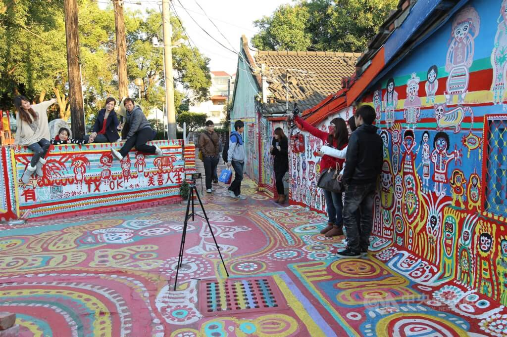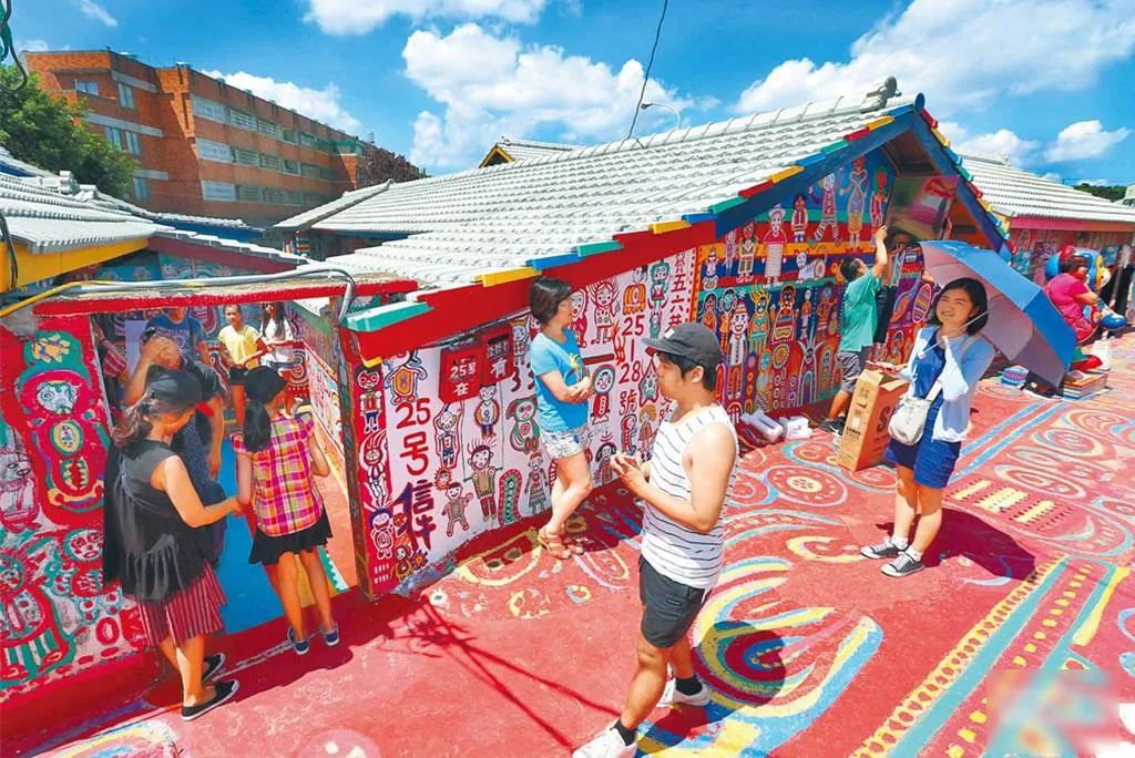 五彩繽紛、充滿童趣的畫風(fēng)讓老舊眷村增添了生機(jī),每逢節(jié)假日,大量民眾前來(lái)參觀打卡。圖片來(lái)源:中時(shí)新聞網(wǎng)