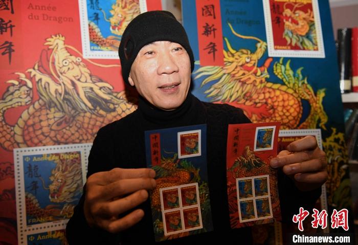 當?shù)貢r間1月26日,法國發(fā)行龍年生肖郵票,為中法建交60周年增添濃郁的節(jié)慶氛圍。圖為法國郵政官員展示郵票。 中新社記者 李洋 攝