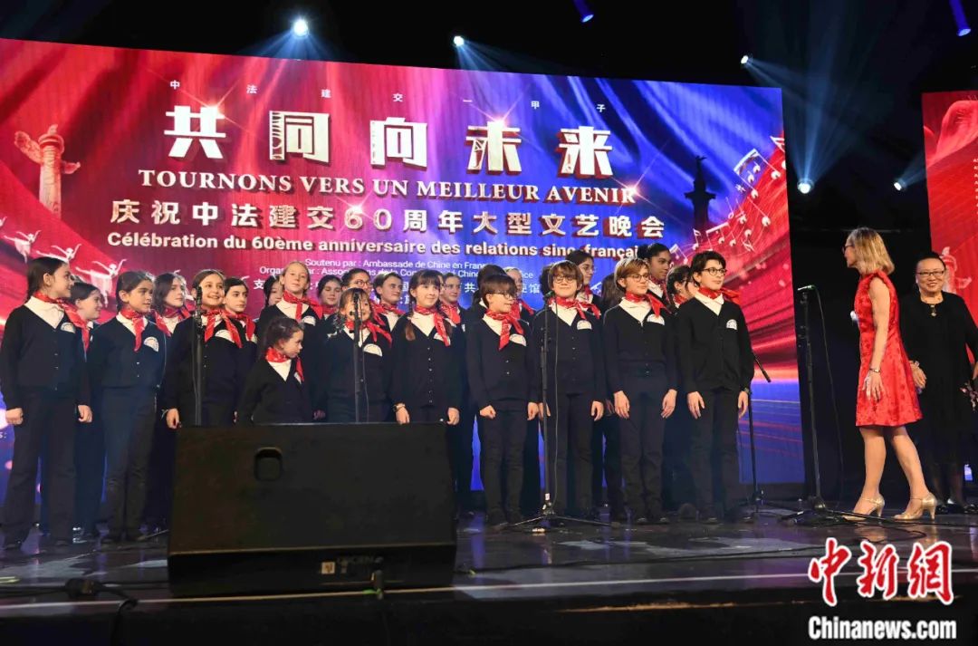 當(dāng)?shù)貢r間2024年1月16日晚,以“共同向未來”為題的慶祝中法建交60周年大型文藝晚會在巴黎舉辦。圖為法國寶利聲童聲合唱團(tuán)演唱歌曲。李洋 攝
