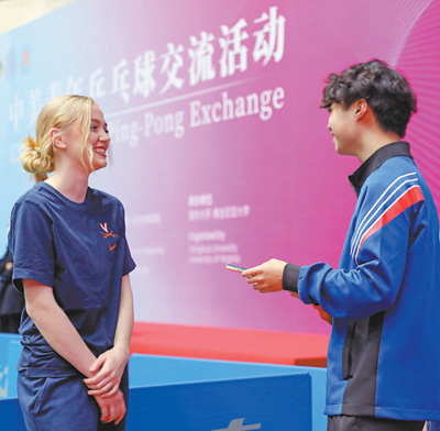 在中美建交45周年之際,北京市人民對(duì)外友好協(xié)會(huì)邀請(qǐng)美國(guó)弗吉尼亞大學(xué)代表團(tuán)訪問北京,并聯(lián)合北京市體育局共同舉辦以“重走乒乓路·一起向未來”為主題的中美青年乒乓球交流活動(dòng)。在清華大學(xué)舉行的這場(chǎng)乒乓球友誼賽,便是此次交流活動(dòng)的主要內(nèi)容之一。盡管是臨時(shí)組隊(duì),但乒乓球迅速化解了兩國(guó)大學(xué)生初次見面的拘謹(jǐn),讓他們很快熟絡(luò)起來,整場(chǎng)比賽也在輕松愉快的氛圍中順利結(jié)束。賽后,兩國(guó)大學(xué)生又聚在一起自拍留念,互留聯(lián)系方式。