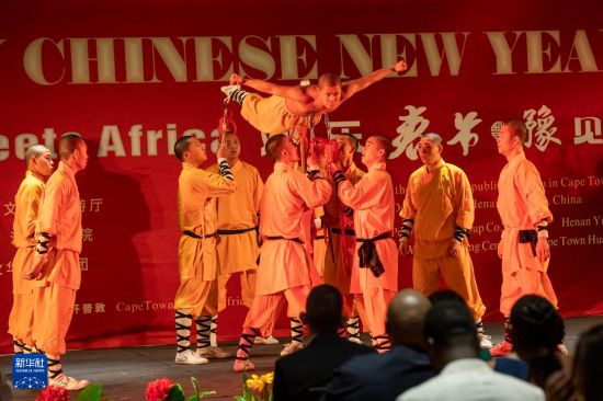 1月27日晚,中國(guó)演員在南非開普敦表演少林功夫。