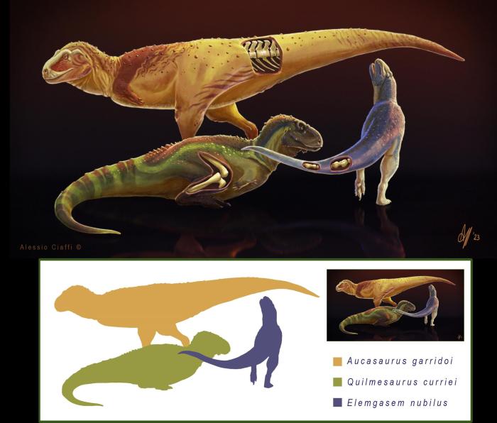 在本項研究中,論文第一作者兼通訊作者、香港中文大學(xué)和阿根廷國立內(nèi)格羅河大學(xué)Mattia A. Baiano與同事及合作者一起,利用計算機斷層掃描(CT)和骨骼組織學(xué)分析,研究了3組獸腳類恐龍的化石遺骸——分別來自加氏奧卡龍、迷霧嚙王龍和柯氏基爾梅龍,它們均生活在白堊紀晚期(距今約9000萬至7000萬年前)的南美洲。3個物種均為阿貝力龍科的獸腳類恐龍,這類恐龍的典型特征是前肢極短,頭骨深且有力并常生有冠、角等骨質(zhì)裝飾部位。