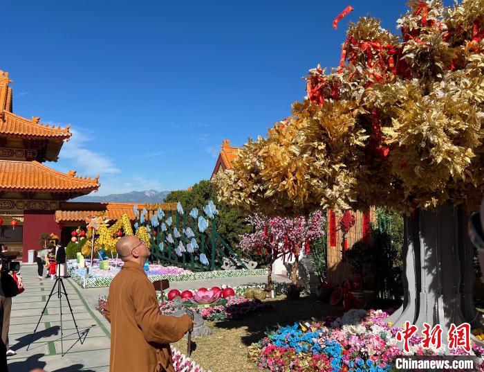記者當日在西來寺看到,大雄寶殿前,靈動的“歡喜龍”主燈已搭建完成。平安燈會以“云水自在,祥和歡喜”為設計主題,祝福人們懷著喜悅的心情迎接新年。春節(jié)期間,寺院成佛大道兩旁還有龍?zhí)熳o佑、五福臨門行三好、百花齊放迎新春、諸事圓滿祈愿樹等景觀。