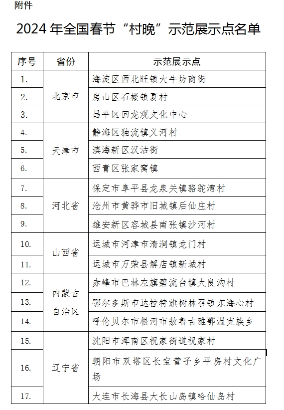 2024年全國春節(jié)“村晚”示范展示點(diǎn)名單