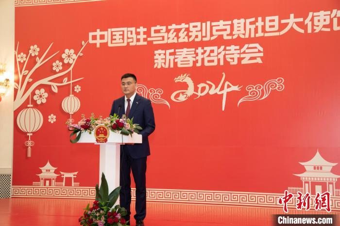 2月1日,烏茲別克斯坦塔什干,中國駐烏使館舉辦“溫暖迎春·共慶中國年” 新春招待會,大使于駿出席并致辭?! ≈袊v烏使館供圖
