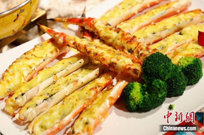 圖為預(yù)制菜簡單加工后的成品黑松露芝士帝王蟹腿。供圖