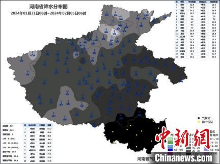 2024年1月31日8時至2月5日6時河南省降水量實(shí)況。河南省氣象局制圖