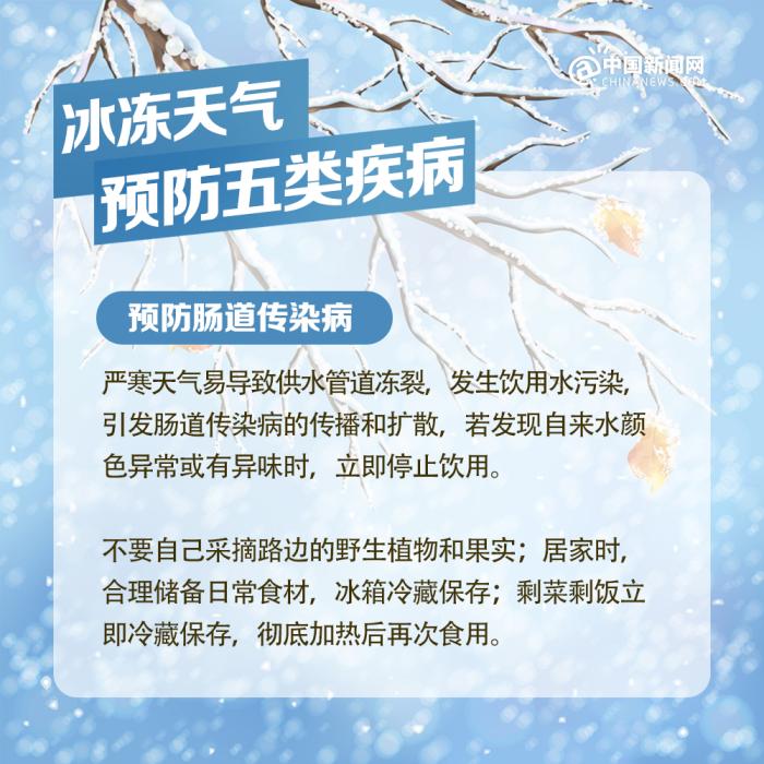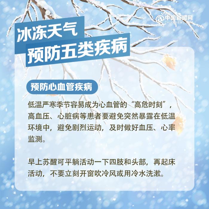 中新網(wǎng)北京2月7日電 近期我國(guó)中東部地區(qū)出現(xiàn)大范圍持續(xù)性低溫雨雪冰凍天氣過程,局部地區(qū)累計(jì)降雪量將接近或超過歷史同期,雨雪覆蓋范圍廣、持續(xù)時(shí)間長(zhǎng)、凍雨范圍大,雨雪冰凍災(zāi)害風(fēng)險(xiǎn)高,恰逢春節(jié)人員大規(guī)模流動(dòng),以下健康防護(hù)要點(diǎn)請(qǐng)查收。