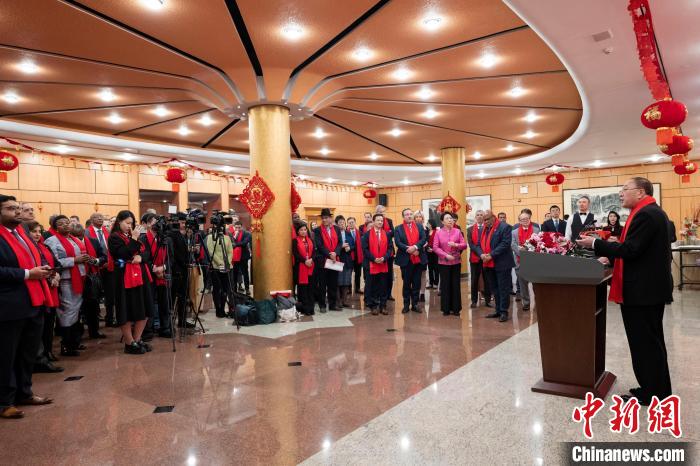 張軍在致辭時(shí)向現(xiàn)場(chǎng)來賓致以節(jié)日問候并向祖國(guó)人民拜年。他說,春節(jié)是中國(guó)最古老、最盛大的傳統(tǒng)節(jié)日,象征著團(tuán)圓與美滿,傳承著中華文明的基因,賡續(xù)著中華文化的血脈,凝聚著全球華人的家國(guó)情懷。春節(jié)作為農(nóng)歷新年也在越來越多走向世界。前不久,在中國(guó)和許多國(guó)家的積極推動(dòng)下,聯(lián)合國(guó)大會(huì)通過決議,將春節(jié)(農(nóng)歷新年)確定為聯(lián)合國(guó)假日。這進(jìn)一步豐富了春節(jié)的世界意義,為更多的人走近中國(guó)、品味中國(guó)、體驗(yàn)中國(guó)提供了機(jī)會(huì)。