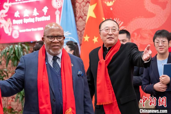當(dāng)晚,中國(guó)常駐聯(lián)合國(guó)代表團(tuán)在紐約駐地舉行龍年新春招待會(huì)。