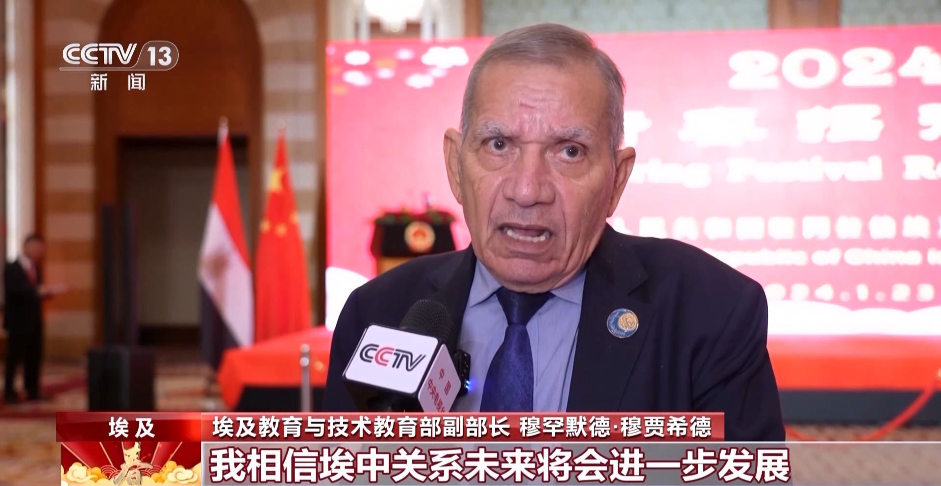 埃及教育與技術(shù)教育部副部長 穆罕默德·穆賈希德:我相信埃中關(guān)系未來將會(huì)進(jìn)一步發(fā)展并實(shí)現(xiàn)更多合作,我想借此機(jī)會(huì)向中國人民致以春節(jié)的問候。