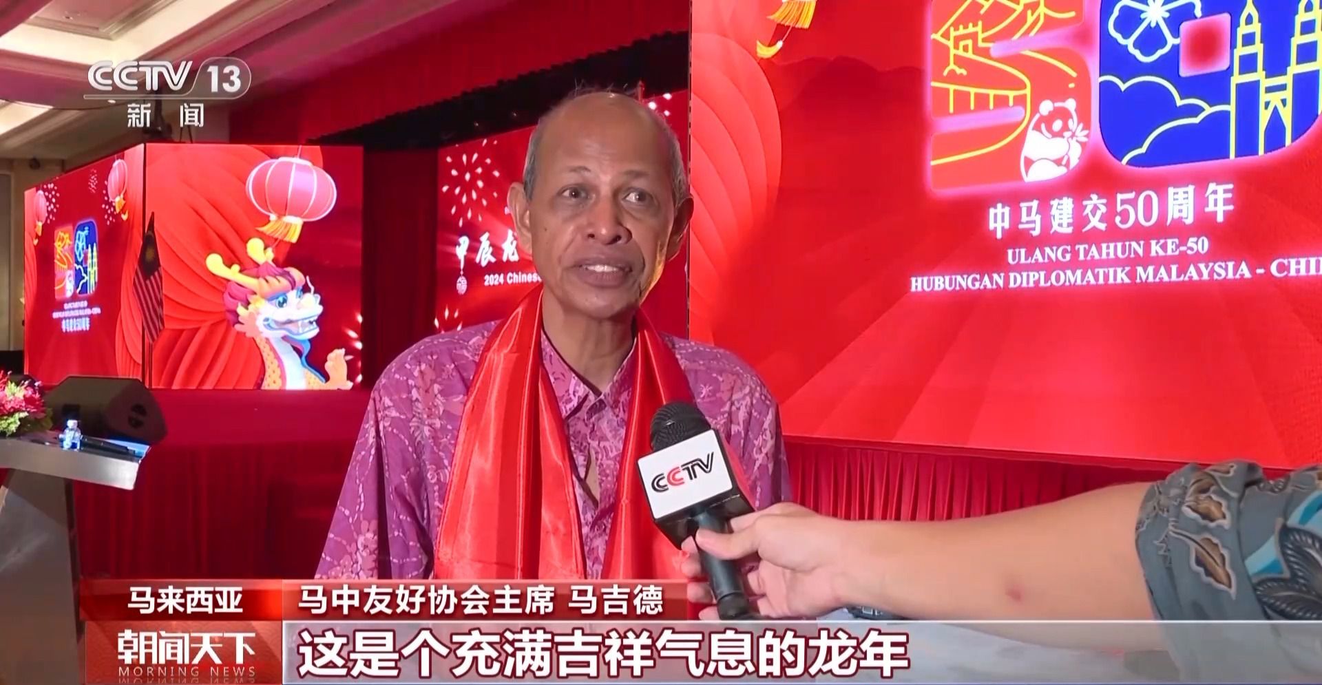 馬中友好協(xié)會(huì)主席 馬吉德:這是個(gè)充滿吉祥氣息的龍年,我知道龍?jiān)谥袊幕惺且粋€(gè)非常重要,富有傳奇色彩的象征,我們預(yù)祝龍年中馬兩國人民建立起更加穩(wěn)定、繁榮和堅(jiān)固的友誼。(央視新聞客戶端)