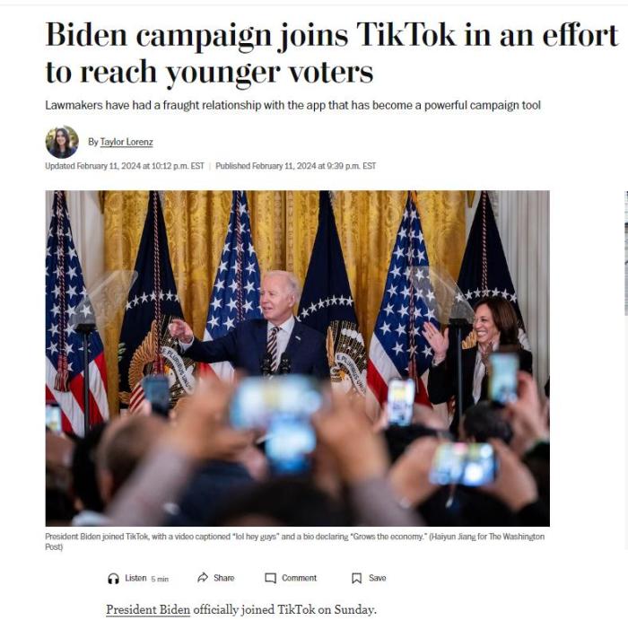 中新網(wǎng)2月12日電 綜合報(bào)道,當(dāng)?shù)貢r(shí)間2月11日,美國總統(tǒng)拜登正式加入了社交平臺TikTok。