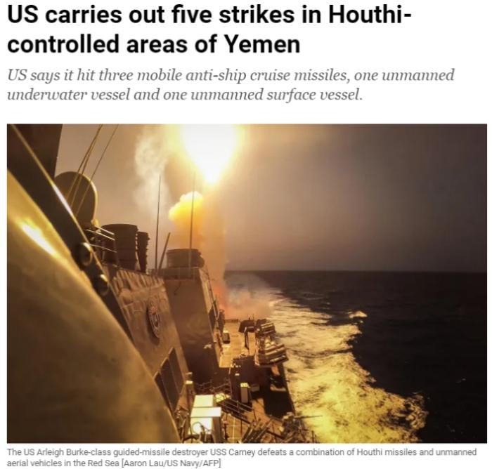 美國中央司令部表示,胡塞武裝的導(dǎo)彈和船只對該地區(qū)的美軍艦和商船“構(gòu)成了迫在眉睫的威脅”,還特別指出:“這是自(2023年)10月23日襲擊開始以來,首次觀察到胡塞武裝使用無人潛航器。”