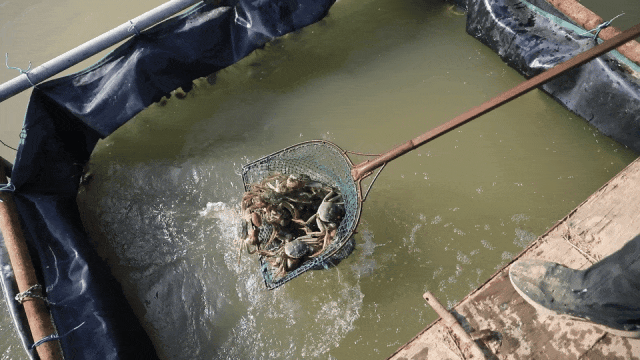 每年3月放苗,9月中下旬進入大閘蟹捕撈旺季,將大閘蟹銷往全國多地。每年12月底,大閘蟹全部清塘。次年1月至3月,進行塘底清淤、消毒。3月開始放水、放苗,開始新一輪的養(yǎng)殖工作。