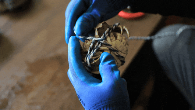 村民正在綁大閘蟹。臨猗縣委宣傳部提供