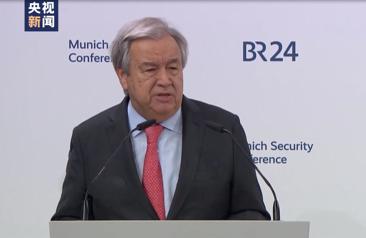 △2月16日,聯(lián)合國(guó)秘書(shū)長(zhǎng)古特雷斯在慕安會(huì)上發(fā)表開(kāi)幕致辭(圖由總臺(tái)記者拍攝)