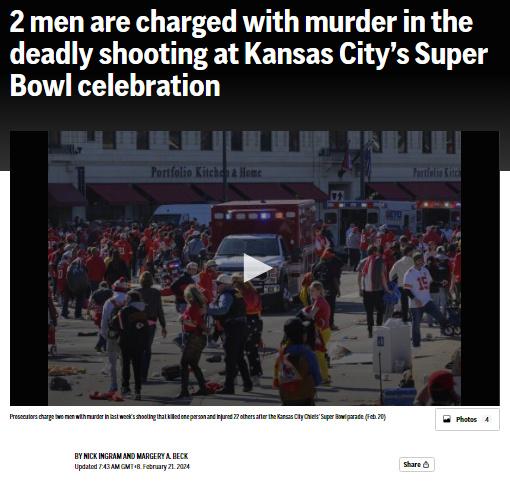 此前報(bào)道,美國密蘇里州堪薩斯城14日在舉行美國職業(yè)橄欖球大聯(lián)盟“超級(jí)碗”勝利游行時(shí)發(fā)生槍擊事件,造成至少1人死亡、20余人受傷。