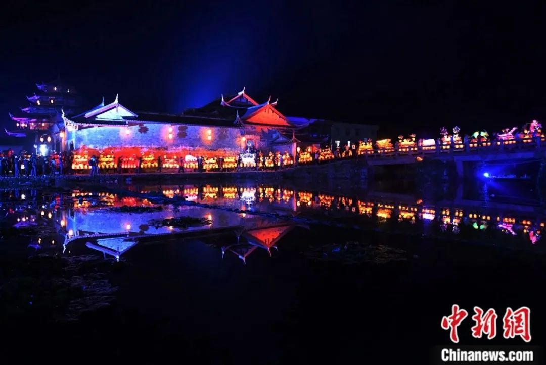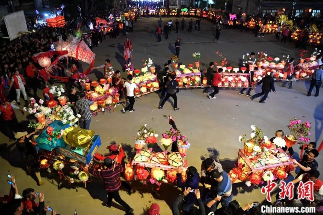 “客家祖地”福建省連城縣芷溪村舉行游花燈活動(dòng),吸引民眾體驗(yàn)民俗文化。圖為游花燈現(xiàn)場。中新社記者 張斌 攝